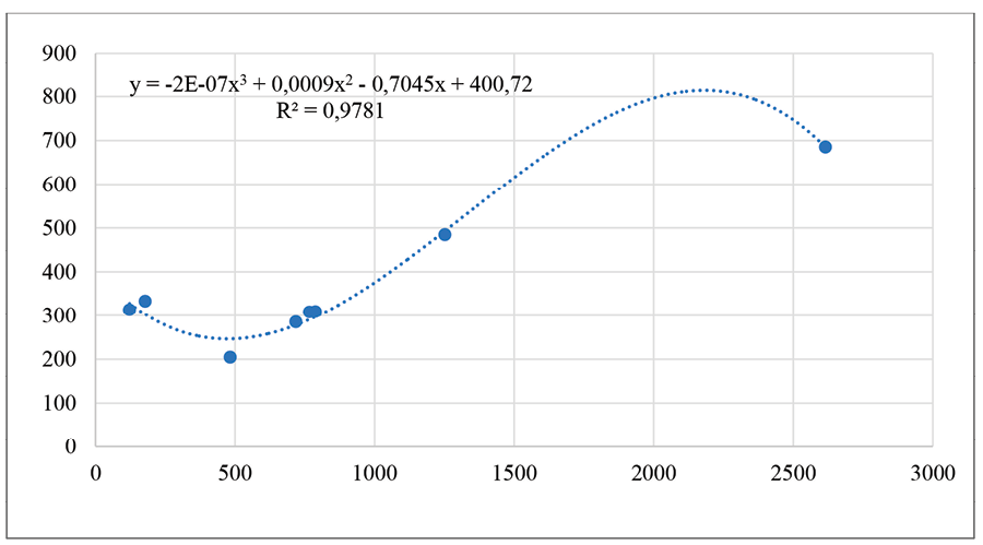 Представленный дисперсионный анализ демонстрирует высокую степень зависимости российского венчурного рынка от мирового (R² = 0,9781), что означает, что 97,81 % вариации российских инвестиций объясняется изменениями мирового рынка. Однако эта зависимость не является линейной. Полиномиальная модель третьей степени указывает на сложный характер взаимосвязи: российский рынок не просто пропорционально следует за мировым, а демонстрирует ускоряющийся рост при увеличении глобальных объемов и замедление при их снижении.